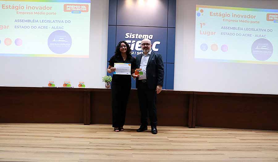 Com o objetivo de contribuir para a difusão das melhores práticas em gestão de carreiras, programas de estágio, aprendizagem e inovação, o Instituto Euvaldo Lodi (IEL/AC) realizou, na tarde de terça-feira, 9, no auditório da FIEAC, a edição 2025 do Prêmio IEL de Talentos.